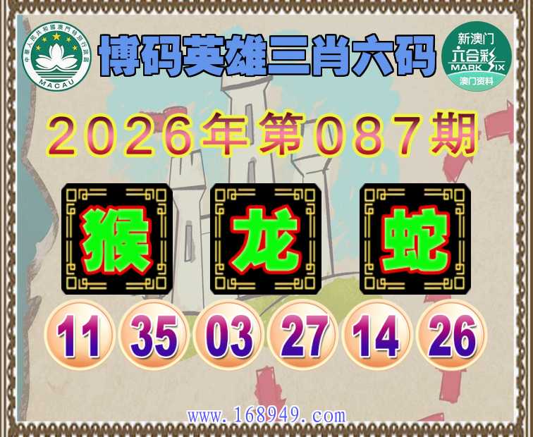 087期:〖博码英雄〗 🪢三肖六码🪢【猴龙】开:蛇26